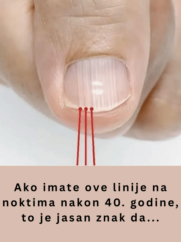 - Dermatologinja Dr. Ivy Lee objašnjava da je to samo prirodan znak starenja, jer se nokti s vremenom suše i postaju grublji. Međutim, ako primijetite da ove linije postaju izraženije ili dolazi do drugih promjena na noktima, to može biti signal za ozbiljnije zdravstvene probleme. Anemija ili kardiovaskularne bolesti mogu biti u pitanju, pa je u tim slučajevima važno obratiti se liječniku.