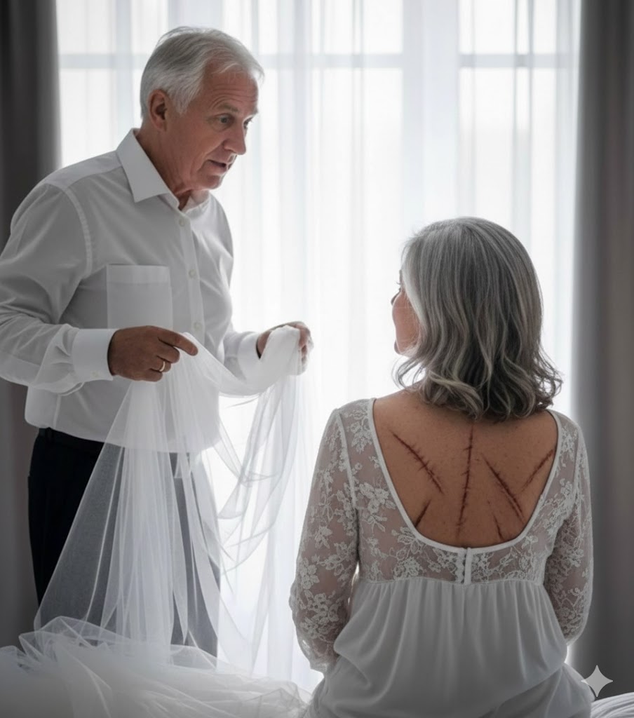• Na našem vjenčanju, koje je bilo skromno i ispunjeno smijehom i prijateljima, primijetio sam nešto na njezinim leđima. Tamo je bio blijed ožiljak, dug i dijagonalan, koji nije bio nov. U trenutku sam osjetio neku nelagodu, ali Claire je brzo objasnila da je to „stara nesreća”. No, nisam mogao ignorirati osjećaj da tu postoji nešto više, nešto što još uvijek nije bilo otkriveno.