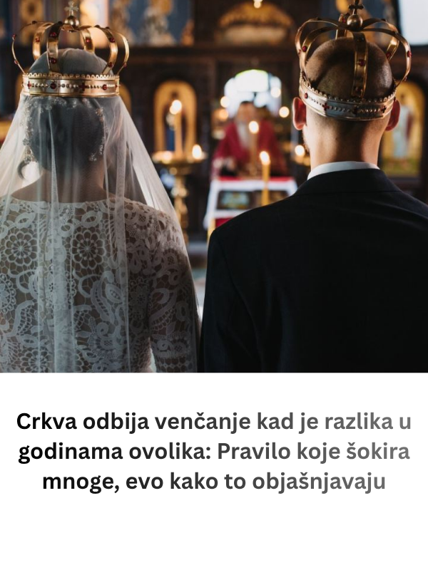 - Jedno od iznenađujućih pravila, koje mnogi ne znaju, odnosi se na razliku u godinama između mladenaca. Srpska pravoslavna crkva (SPC) ima jasno definisane smernice u vezi sa tim, a razlika u godinama veća od 15 godina može postati ozbiljna prepreka za crkveno venčanje. Crkva strogo savetuje da se brakovi sa velikom razlikom u godinama ne sklapaju, jer se takva situacija smatra potencijalnim problemom za dugoročno funkcionisanje veze.
