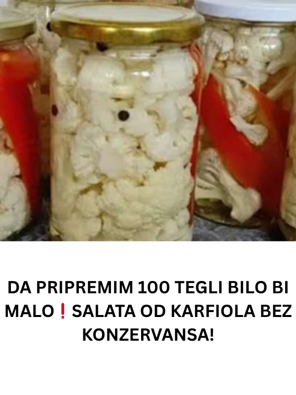 U današnjem članku, želim vam predstaviti recept za pripremu salate od karfiola koja je potpuno prirodna, bez ikakvih konzervansa, a dovoljna je za pripremu čak 100 tegli! Ovaj recept je idealan za ljubitelje kiselih salata, ali i one koji žele da uživaju u zdravoj hrani bez dodataka koji mogu biti štetni po zdravlje.