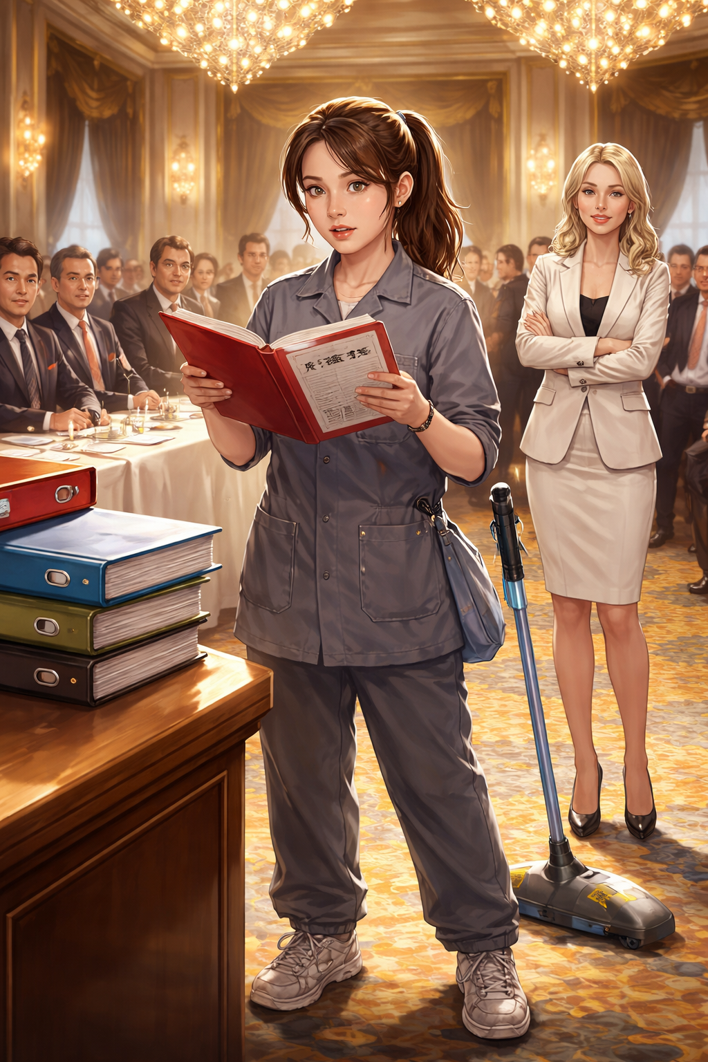 Među elegantno odjevenim gostima, sa zlatnim lusterima koji su svijetlili nad njima, bila je Lea Horvat, mlada čistačica, koja je u svojoj prevelikoj uniformi stajala uz mop, pomalo nespretno i gotovo neprimjetno.