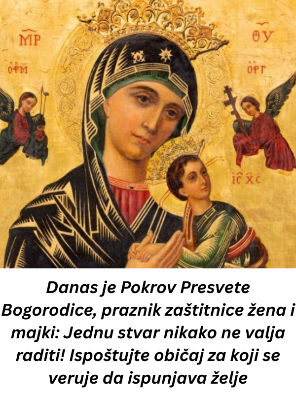 - Ovaj praznik, koji se slavi 14. oktobra, posvećen je zaštiti žena i majki, te nosi snažnu simboliku nade, zaštite i ljubavi. Prema narodnom predanju, Pokrov se odnosi na događaj iz 911. godine u Carigradu, kada je Bogorodica ukazala narodu u crkvi Vlaherni, pokrila ih svojim plaštom i pružila im božansku zaštitu. Ovaj čin je postao simbol zaštite i sigurnosti, a praznik se i danas doživljava kao dan kada se traži duhovna zaštita, mir i blagoslovi.