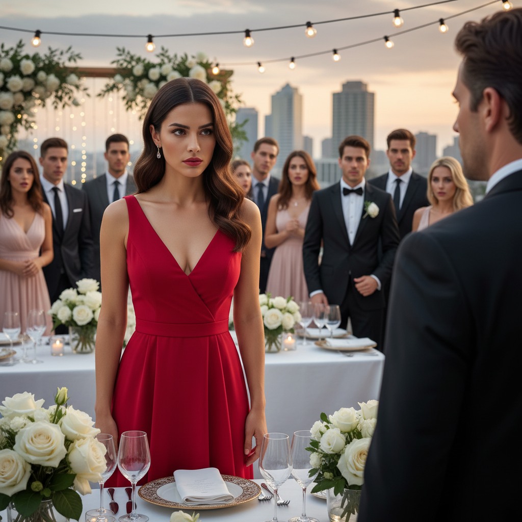 • Tea je došla na vjenčanje svog bivšeg muža s planom da mu uništi dan. Nosila je crvenu haljinu koja je isijavala samopouzdanje, no ispod tog blistavog osmijeha skrivala je lavinu bijesa i boli. Marko, njezin bivši muž, napustio je prije samo nekoliko mjeseci, ostavivši je bez objašnjenja i bez snova koje su zajedno gradili. Šokirala ju je vijest da se oženio nekom drugom, i to samo par mjeseci nakon što su se rastali. Osjećala je kako je duboko povređena i odlučila da će prisustvovati njegovom vjenčanju, ali ne kao prijatelj, već kao netko tko će mu uzvratiti za sve.