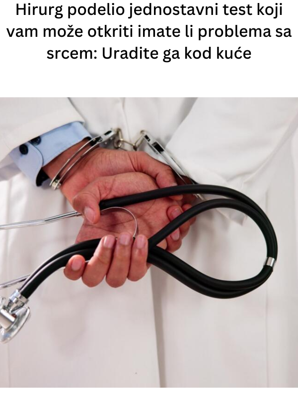 - S obzirom na to da su kardiovaskularne bolesti među najčešćim uzrocima smrti širom sveta, postavlja se pitanje kako da prepoznamo rane znakove i obratimo pažnju na zdravlje svog srca. Dr. Džeremi London, kardiolog sa preko 25 godina iskustva, podelio je jednostavan način da proverite zdravlje svog srca iz udobnosti svog doma. Ovaj test ne zahteva složene laboratorijske analize, rendgen ili EKG, već se bazira na sposobnosti da prepoznate signale koje vam telo šalje.