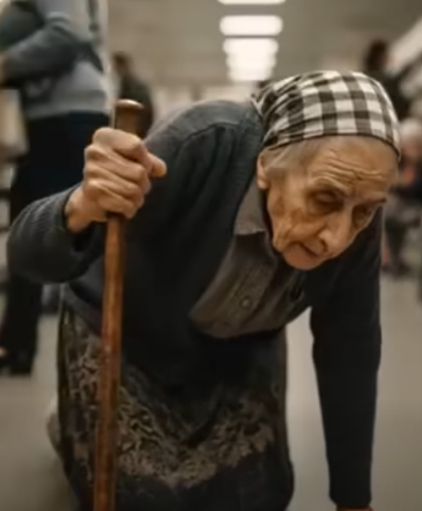 • Dok je starica pokušavala da se podigne, gledajući oko sebe, njene oči bile su pune suza. Držala je štap u rukama, pokušavajući da ustane, ali bol je bio nepodnošljiv. Suze su joj navirale dok je tražila pomoć, ali ona nije dobijala odgovore. Svi su je ignorisali, kao da nije postojala. Starica je odlučila da pokuša nastaviti, puzeći prema izlazu. Svaki pokret bio je mučan, ali ona nije odustajala.