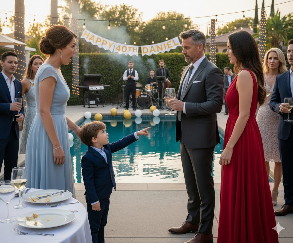 Tijekom večeri, dok su gosti uživali u razgovoru, Laura je gledala Daniela kako se smije s kolegama. Njene oči su ga pratile s ljubavlju i ponosom, a njen sin Ethan je veselo trčao oko stola s balonom u ruci. Ipak, ono što nije mogla naslutiti, bila je ta tiha, ali opasna promjena koja će uslijediti. Dok je sve izgledalo kao savršena noć, u trenutku je sve krenulo naopako. Ethan je, s nevinim pogledom, rekao nešto što je u trenu promijenilo sve: „Mama, vidio sam tatu kako je ljubi napolju.“
