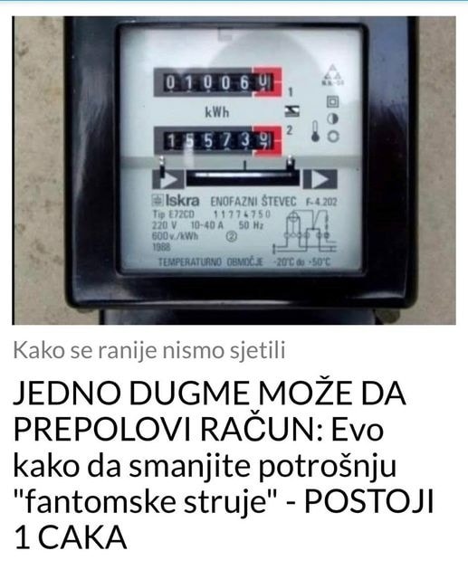 - Riječ je o tzv. fantomskoj struji, odnosno električnoj energiji koju uređaji nastavljaju trošiti čak i kada ih ne koristimo. Većina nas misli da ugašen televizor, punjač koji nije priključen na telefon ili računar koji je isključen sa monitora ne troše ništa, ali istina je potpuno drugačija. Oni i dalje ostaju povezani na mrežu i lagano povlače struju, neprimjetno povećavajući naše račune.