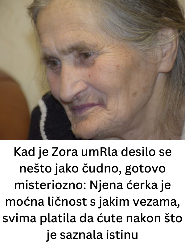- Njena ćerka, koja je verovala da je učinila dovoljno – zvala je, plaćala račune, organizovala sve – suočila se s istinom tek tada. Nije nikada pitala kako je Zora zaista, nije joj postavljala pravo pitanje. Nikada nije pogledala dublje od površinskih “kako si, mama?” i nikada nije primetila da njena majka više ne smeši svojim bićem. Kada je Zora nestala, kada je iz njenog života otišla poslednja iskra, tada je ćerka shvatila – nije bilo dovoljno samo biti tu fizički. Nije bilo dovoljno samo izgovarati reči, donositi novac ili obavljati zadatke. Trebalo je više od toga. Trebalo je gledati dublje, videti tišinu koja se skriva iza osmeha, pitati: “Kako si ti zapravo, mama?”