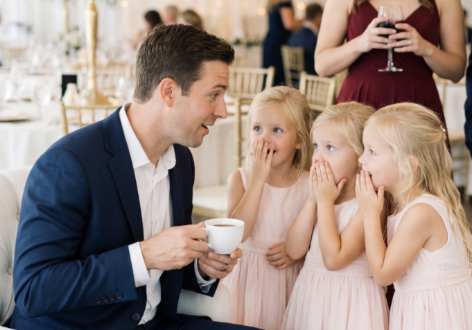 • Međutim, tog večeri, tri male djevojčice prekinule su njegovu rutinu. Došle su do njega s pitanjem koje ga je potpuno izbacilo iz ravnoteže. Pored njega su stajale tri slične djevojčice, svaka s kovrdžavom kosom vezanom istim ružičastim vrpcama, sa ozbiljnošću koja nije bila tipična za decu njihovih godina. Stajale su tu, gledale ga, i rekle mu da su ga posmatrale celu večer i da su ga “namerno izabrale”. Tada su izgovorile rečenicu koja mu je potpuno oduzela dah: „Treba da se pretvaraš da si nam tata. Samo večeras. Samo dok zabava ne završi.“