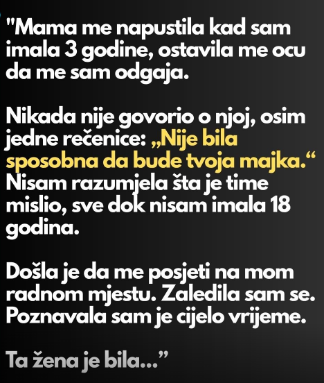 - Iako deluje kao da život ide svojim tokom, duboko u srcu ostaje nešto nespoznato, nešto što nas tera da tražimo odgovore, iako je kasno da ih tražimo.Jedan od tih trenutaka je došao kad je žena saznala istinu koja joj je potpuno promenila život. Iako je godinama nosila osećanje da je majka napustila, stvarna priča bila je potpuno drugačija.