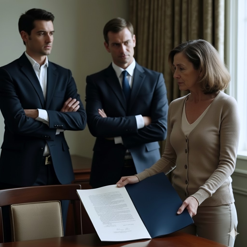 Sala je bila ispunjena ljudima koji su se ponašali kao da unapred znaju ishod. Moji sinovi su sedeli samouvereno, gotovo nadmeno, uvereni da im sve pripada. Njihovi pogledi su mi jasno poručivali da sam tu suvišna, da sam samo neko ko smeta planiranju budućnosti ispunjene nasledstvom, novcem i statusom. Jedan od njih mi je čak rekao da tu nije moje mesto, jer nisam „bliska porodica“. Te reči su zabolele više nego što sam očekivala, jer su dolazile od moje krvi, ali sam ostala mirna.
