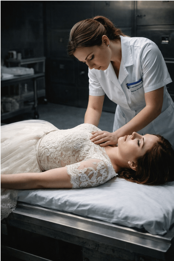 Nevjesta je, nakon što je iznenada preminula na svom venčanju, odvezena u mrtvačnicu, ali radnica iz mrtvačnice primetila je nešto veoma neobično. Iako su svi mislili da je već mrtva, njeni obrazi bili su rumeni, a čak su zabeleženi i otkucaji srca.