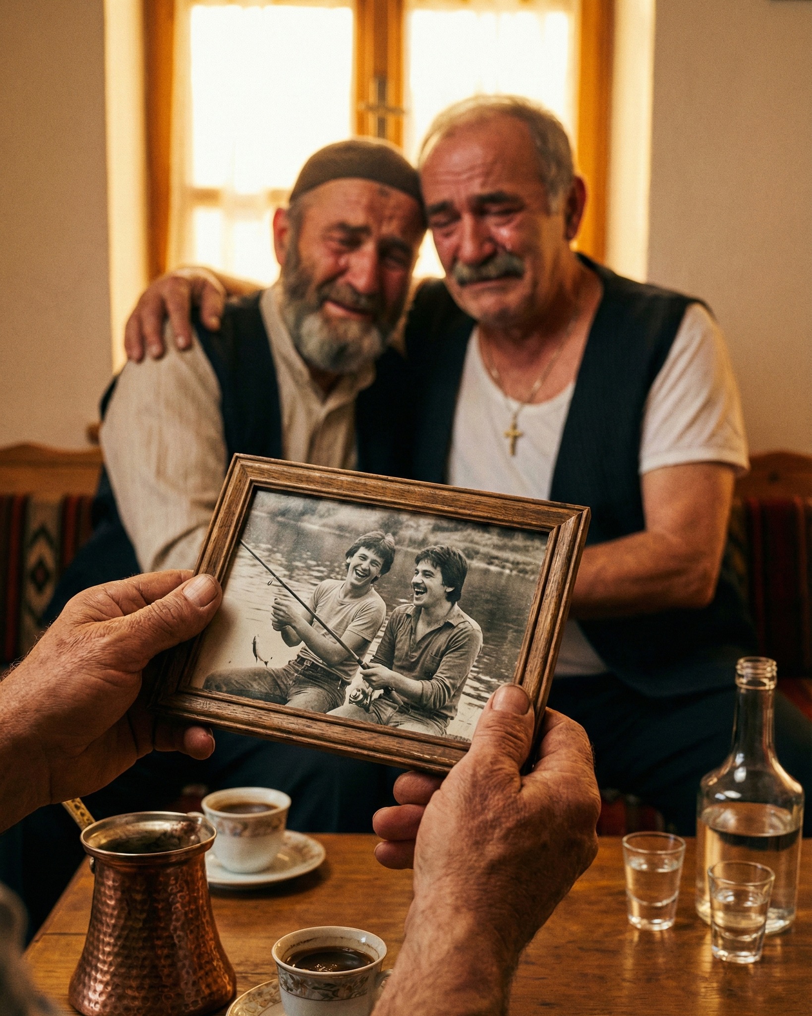 Na slici su bila dva mladića, zagrljena i nasmijana. Jedan od njih bio je Ibro, drugi Milanov otac. Snimak iz vremena kada su bili prijatelji, prije nego što ih je rat razdvojio. Taj trenutak slomio je zidove koje godine nisu uspjele srušiti. Ibro je shvatio da mržnja koju nosi ne pripada njegovoj kćerki niti njenoj budućnosti.