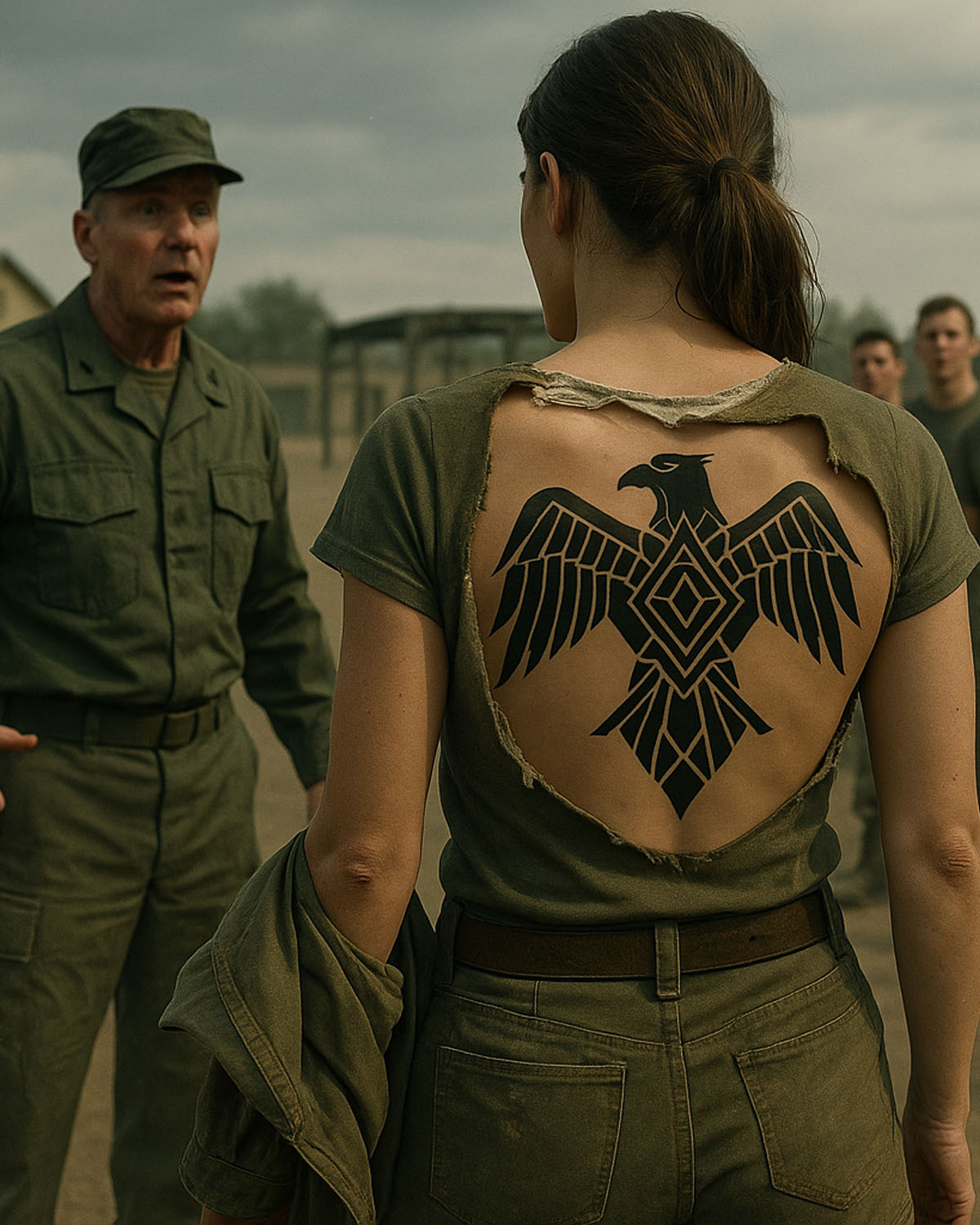 Kad su svi očekivali još jedan neuspjeh, ona je iznenadila sve. Tetovaža koja se pojavila, simbol koji je nosila na leđima, izazvao je zaprepaštenje. Taj simbol, koji je bio duboko ukorijenjen u prošlosti, nije bio samo običan ukras na koži, već snažna poruka, naslijeđe i tajna koju su svi prisutni pomno gledali. Tada je zapovjednik, koji je cijelo vrijeme promatrao situaciju, postao vidljivo uznemiren. Njegovo lice je izblijedjelo, a ruke su mu počele drhtati. Samo je on prepoznao što ta tetovaža znači. Bio je to simbol koji je nosio sa sobom povijest, teret i snagu koju ni on, ni ostali, nisu mogli razumjeti.