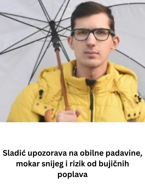 - Kako Blic prenosi, poznati bh. meteorolog Nedim Sladić upozorio je da predstoje dani izrazito nestabilnog vremena, obilježenog obilnim padavinama, mokrim snijegom i povećanim rizikom od bujičnih poplava.