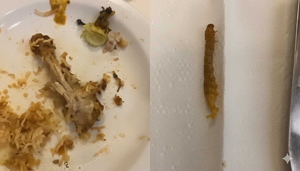 - Nakon što je pojeo jedno krilce, koje je bilo potpuno normalno na prvi pogled, iznenada je osjetio nešto neobično u ustima. Kada je dalje istraživao i razmišljao, shvatio je da je u kost krilca bila zalepljena neka vrsta insekta. Nažalost, nije se radilo o običnoj šteti, već o stvarnom crvu koji je bio unutar mesa. Ovaj nesvakidašnji susret s nečim tako odvratnim izazvao je mučninu i gotovo odmah je počeo osjećati kako mu je želudac u potpunom neredu.