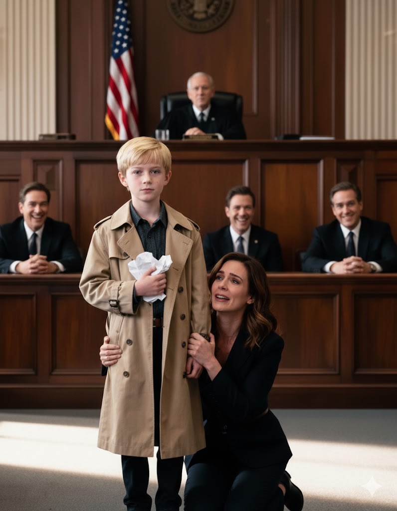 Međutim, uslijedio je trenutak koji nitko nije mogao predvidjeti. Ethan, mali dječak, hrabro je ustao iz svog mjesta. Nije plakao, niti se skrivao. Na sebi je imao bež sako koji je nosio samo za posebne prilike, i jasno je izgovorio rečenicu koja je zamrznula sudnicu: „Ja sam advokat svoje mame.“