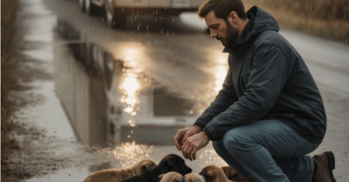 Izgleda da ih je netko jednostavno bacio s ceste, kao da su bili samo otpad, bez obzira na to što su bila živa bića. Tragovi guma su jasno pokazivali da je ovo bilo nedavno. Ovi mali štenci nisu razumjeli tragediju koja ih je zadesila, ali su razumjeli da moraju ostati uz svoju majku, koja je pokušala zaštititi ih od kiše svojim tijelom prije nego što je tragično poginula. Iako su bili premali da razumiju smrt, bili su dovoljno odani da ostanu uz mjesto na kojem je njihova majka ležala. Nisu otišli, nisu se pomaknuli ni korak dalje. Njihova odanost bila je nešto što se rijetko viđa, čak i među odraslim psima.