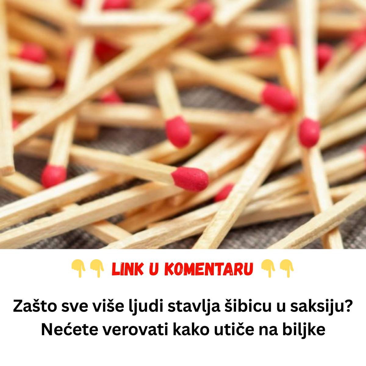 - Ovo se obično pripisuje nedostatku esencijalnih minerala u zemljištu, ili napadu štetočina koje oštećuju koren i listove biljaka. Kurir ističe da je ovaj trik sa šibicama zapravo jedan od načina da se na prirodan način osigura biljkama neophodna ishrana i zaštita, bez korišćenja skupih pesticida ili đubriva.