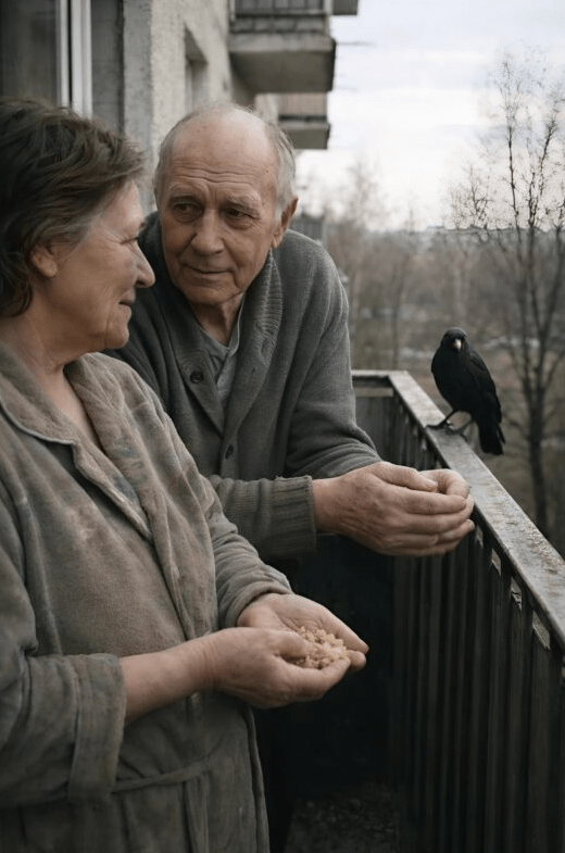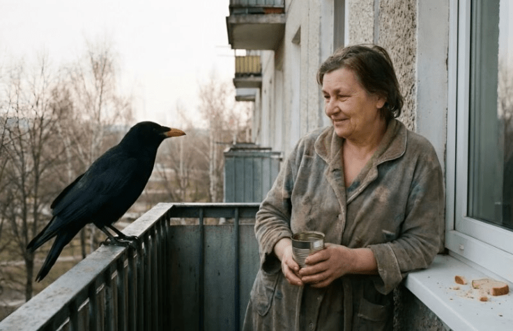 Žena je živela sama, jer je njen muž preminuo pre mnogo godina, a sin se preselio u drugi grad, postajući sve udaljeniji. Njen dan je počinjao rutinskom kafom, šakom mrvica hleba i šetnjom na balkon. Iako je njena svakodnevica bila jednostavna, njeno srce nije bilo usamljeno. Vrana je postala njen verni suputnik.